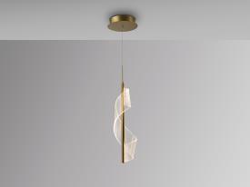 Lampe en métal et en aluminium, finition or mat. Diffuseur courbe en méthacrylate micro-imprimé. Réglable en hauteur. 10,5W LED, 455 lm, 3.000K.