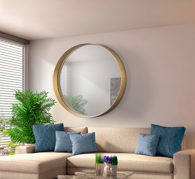Dimensions : Ø 102 x p 7,5 cm miroir décoratif, avec cadre en PU, finition dorée. Matériau: Verre, MDF, polyuréthane Finition: Miroir, Or