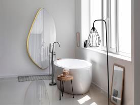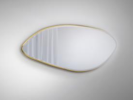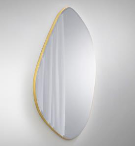 miroir ovale irrégulier, avec cadre MDF en FEUILLE OR et glace biseautée. Prêt à être accroché à l'horizontale ou à la verticale.
