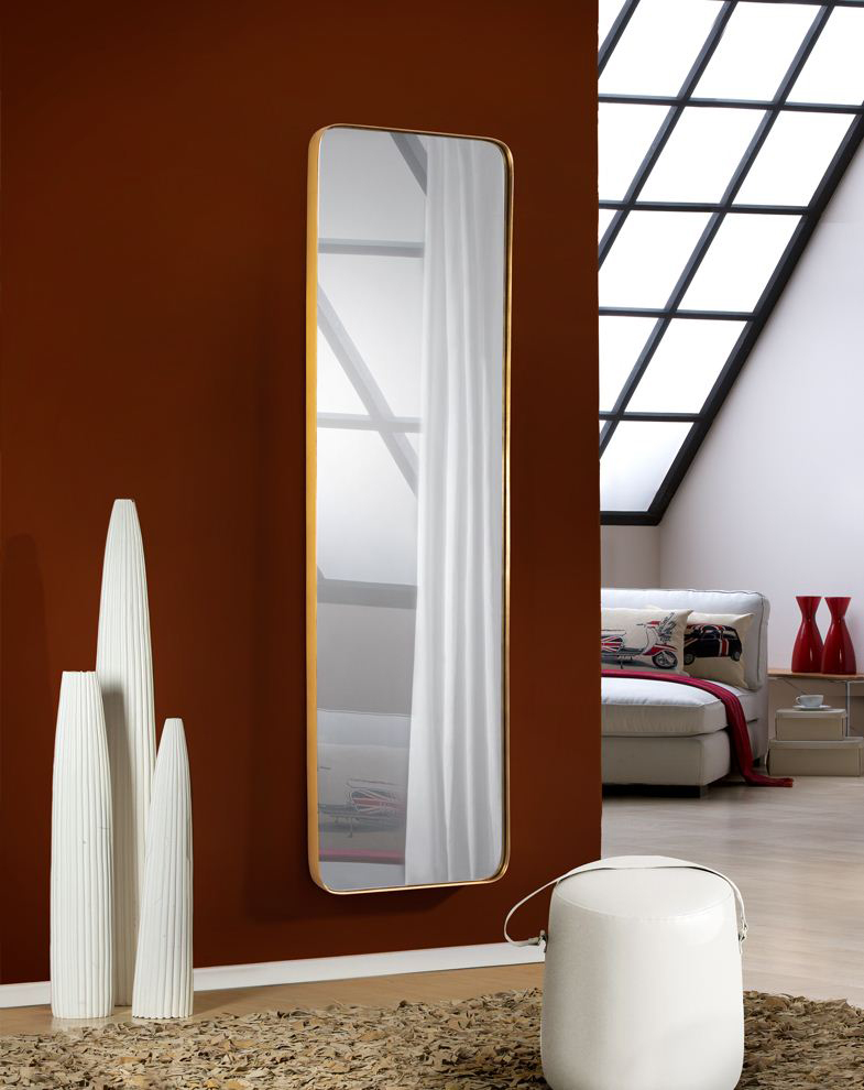 miroir rectangulaire avec cadre en DM finition FEUILLE D’OR. Préparé pour être suspendu en position horizontale ou verticale.