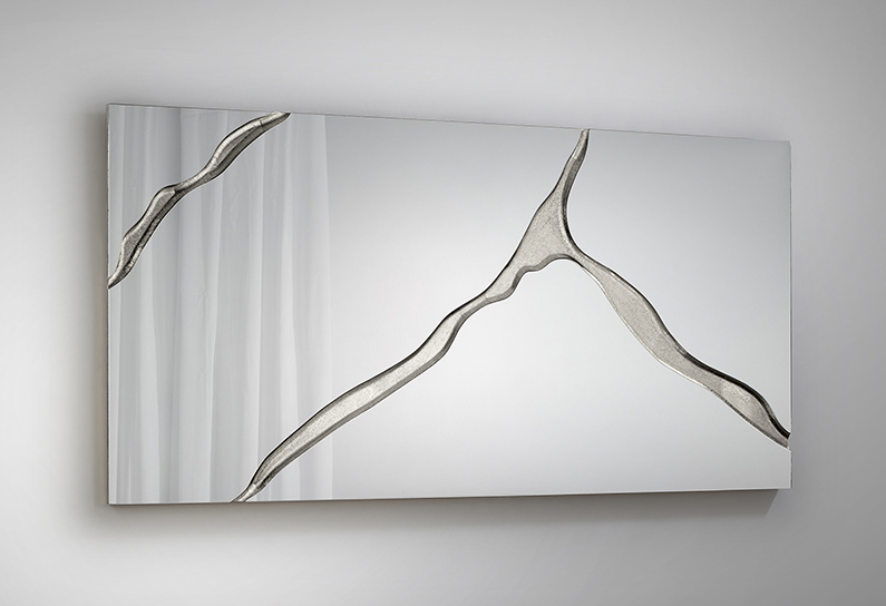 miroir rectangulaire avec fente décorative, avec base MDF finition FEUILLE ARGENT, prêt à être suspendu verticalement et horizontalement.