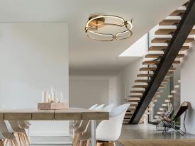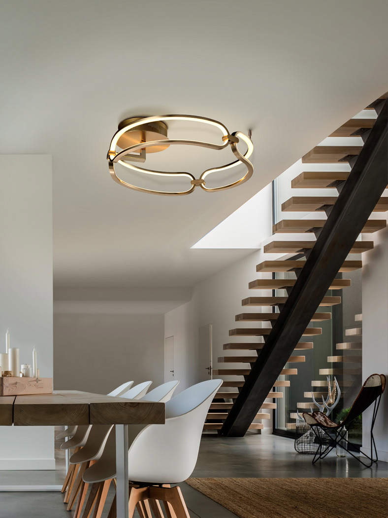 Plafonnier LED petit, réalisé en aluminium brossé, finition or rose. Diffuseurs en silicone opale. 37W LED, 3.330 lm, 3.000 K. DIMMABLE