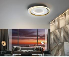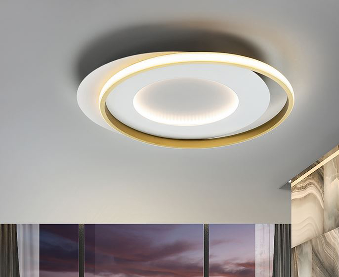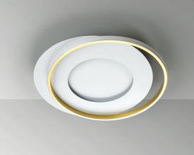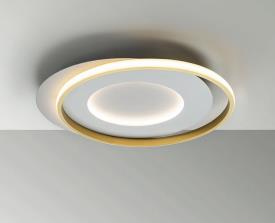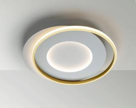 Plafonnier réalisé en métal et aluminium, finition blanc mat et or, diffuseur opale en silicone. 40w led. 4.400 lm. 3.000 k.