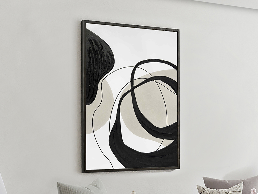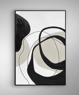 ACTIO I- Peinture acrylique montée sur châssis. Cadre en polystyrène noir. Préparé pour suspendre en position horizontale ou verticale.
