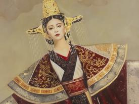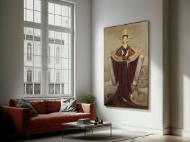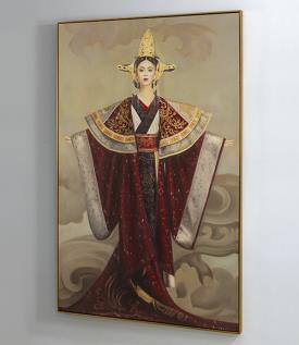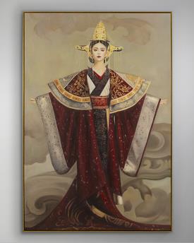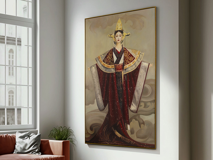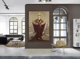 Toile imprimée, femme orientale. Cadre finition en or brossé sur noir.