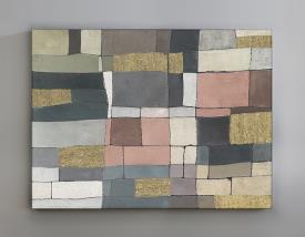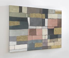 ZONES- ACRYLIQUE 120X160 Dimensions : l 120 x h 160 x p 4 cm ZONES- Peinture acrylique avec applications dorées, montée sur châssis. Matériau: Acrylic painting on canvas tableau