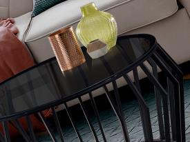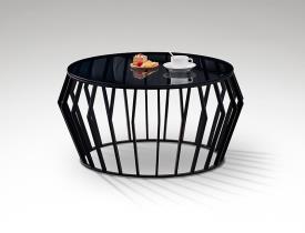 CIROS-TABLE BASSE NOIR MAT Dimensions : Ø 90 x h 45 cm Table basse en métal, finition noir mat. Dessus en verre fumé 8 mm. Matériau: Métal, verre Finition: Noir mat, fumé table auxiliaire