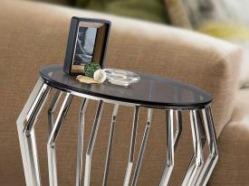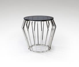 Guéridon en acier inoxydable avec finition brillante. Dessus en verre fumé 8 mm.