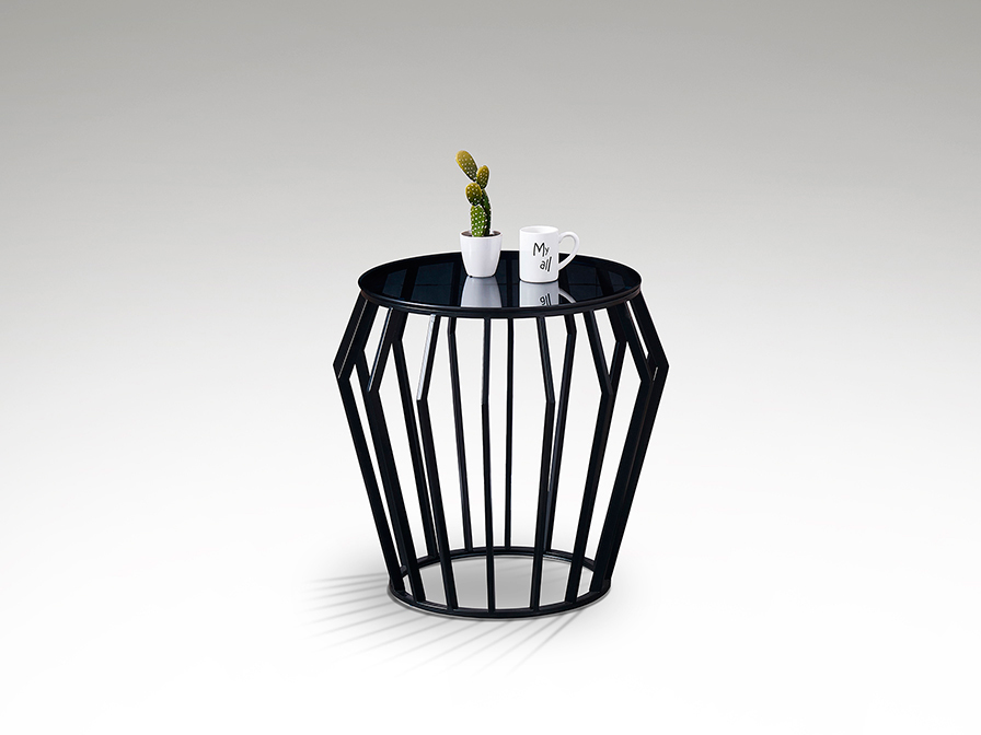 CIROS-GUÉRIDON NOIR MAT Dimensions : Ø 60 x h 55 cm Guéridon en métal avec finition noir mat. Plateau en verre fumé 8 mm. Matériau: Métal, verre Finition: Noir mat, fumé table auxiliaire